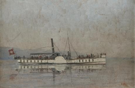 Bateau de la CGN La Mouette, huile sur carton, 26x38 cm