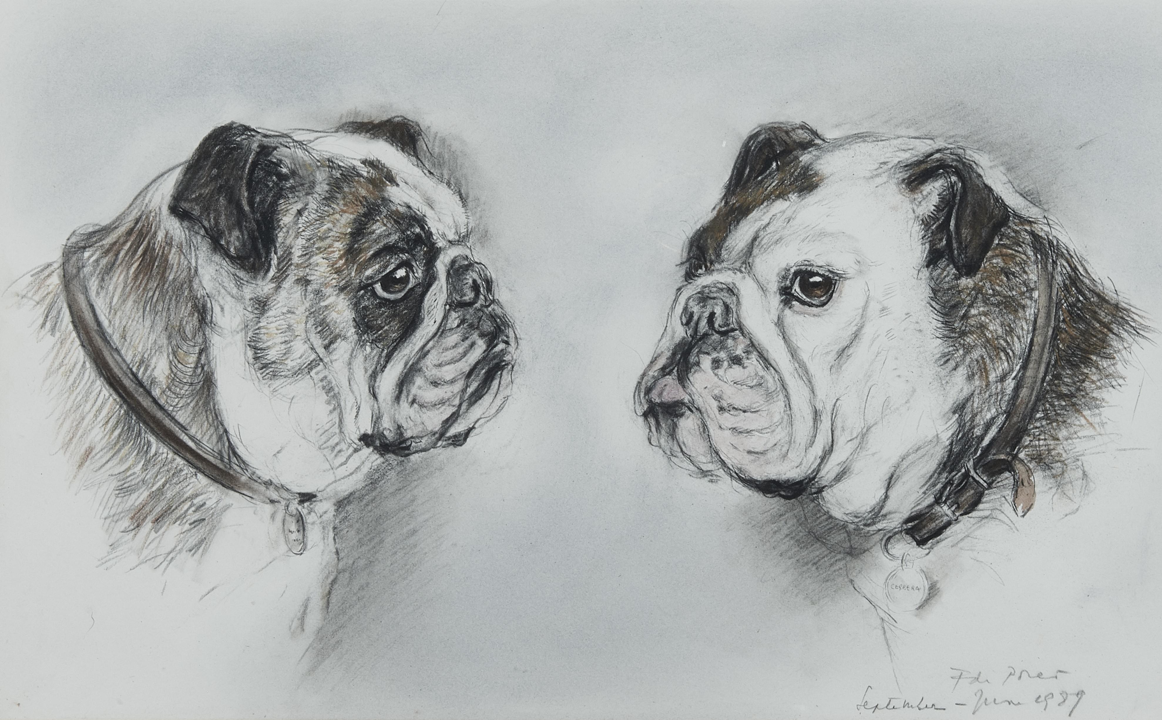 Bulldog anglais, crayon gras et mine de plomb, signé et daté 1989, 39x57 cm