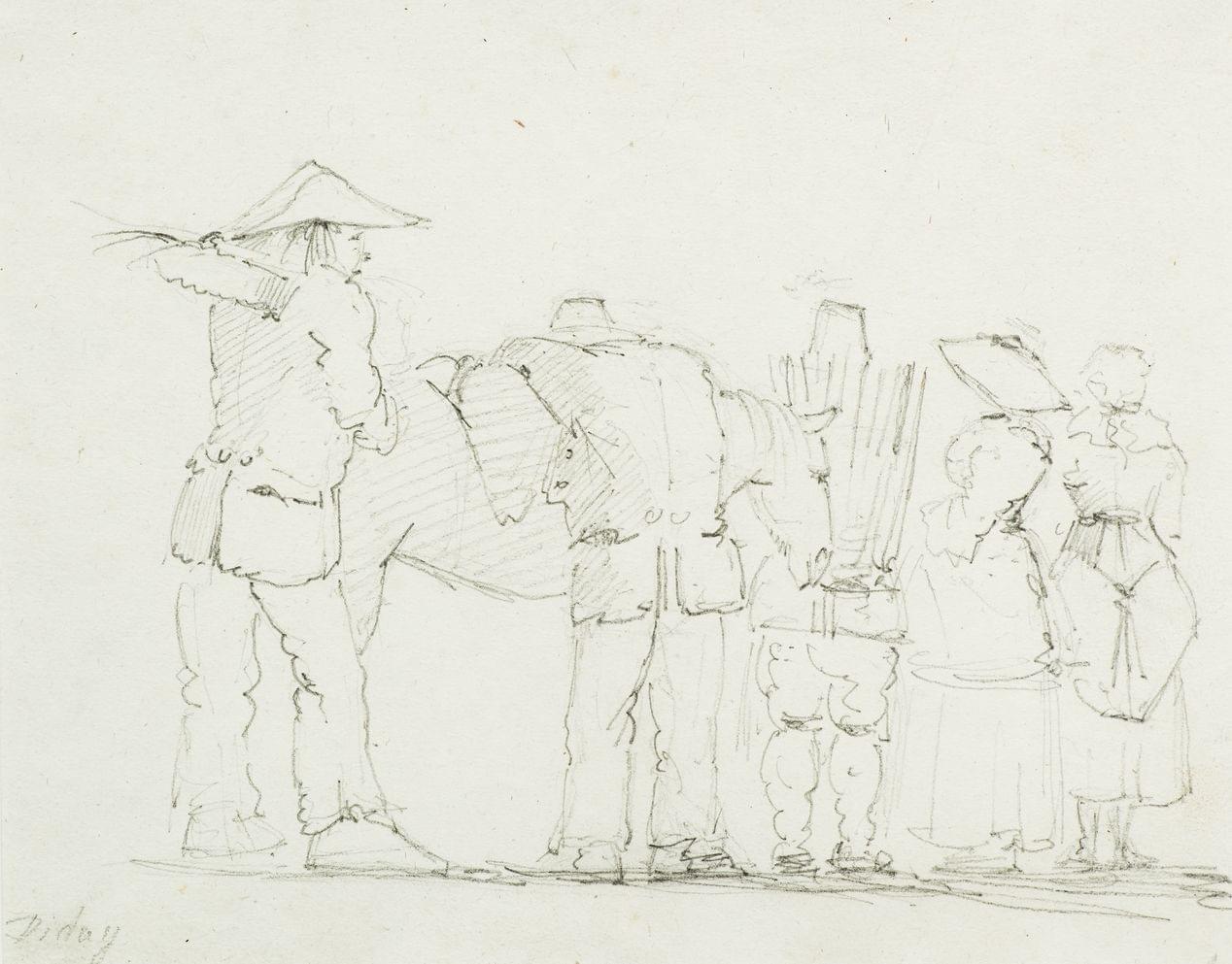 Etude de personnages sur le lac, fusain, 21x29 cm