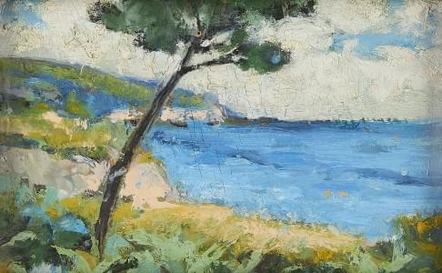 Vue de la baie de Nice, huile sur isorel, signée, 20x33 cm