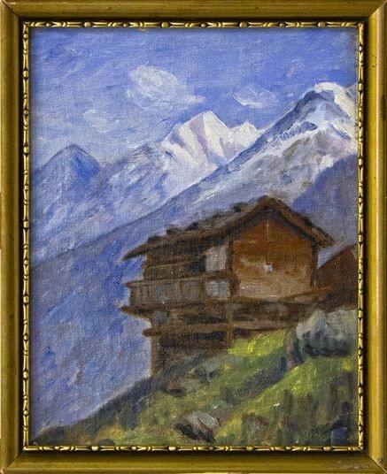 Place de village à la fontaine, huile sur carton, 41x33 cm