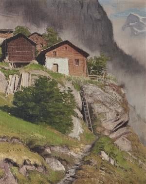 Village de montagne, huile sur toile, signée, 26x21 cm