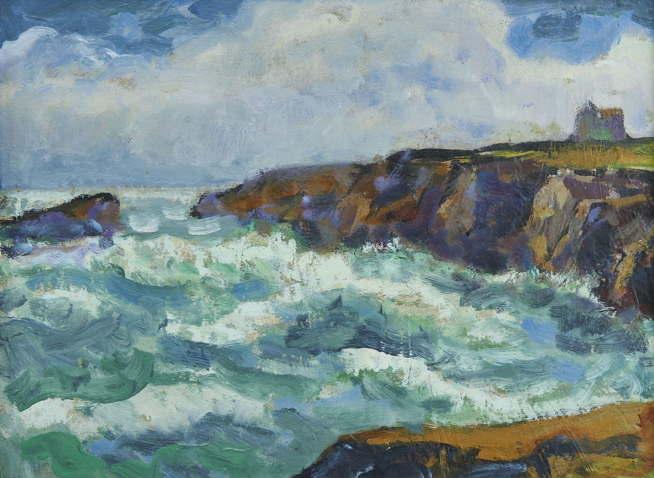 Mer agitée, huile sur pavatex, étiquette de l'artiste au dos, 34x46 cm