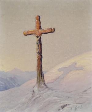 Calvaire dans les Alpes, huile sur toile, signée, 46x38 cm