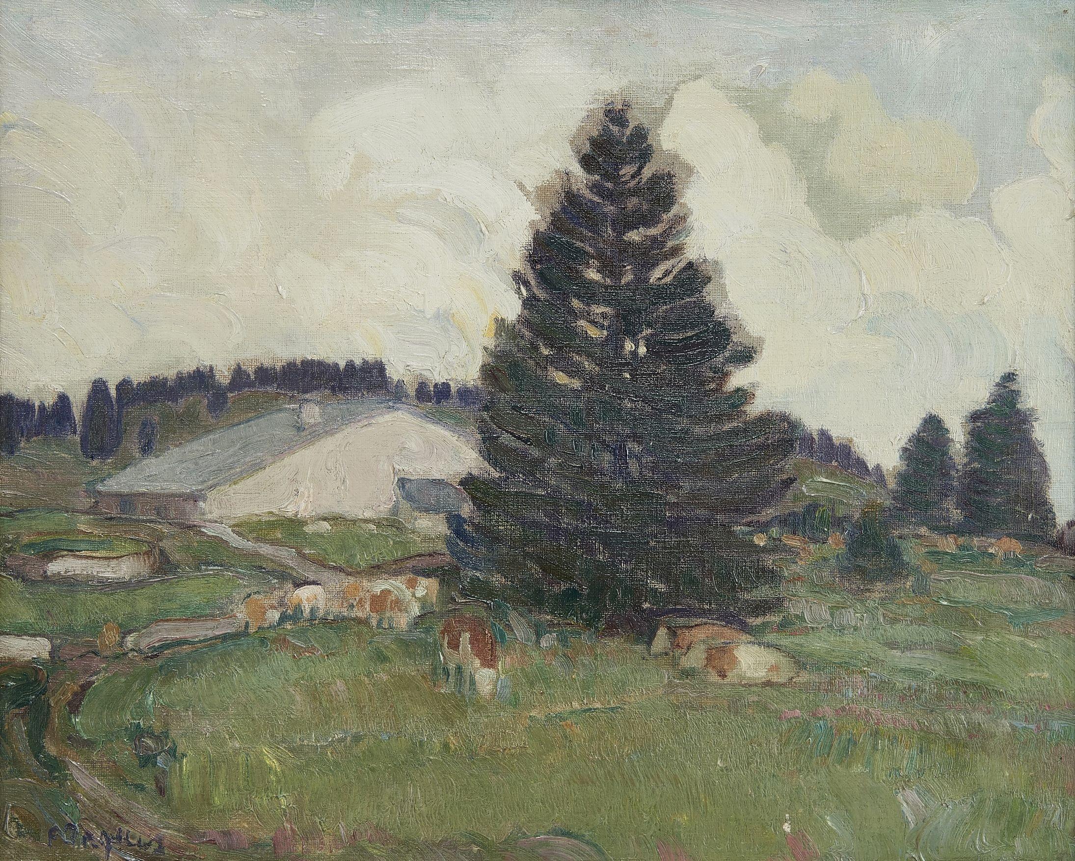 Pâturage dans le Jura, huile sur toile, signée, 29x36 cm