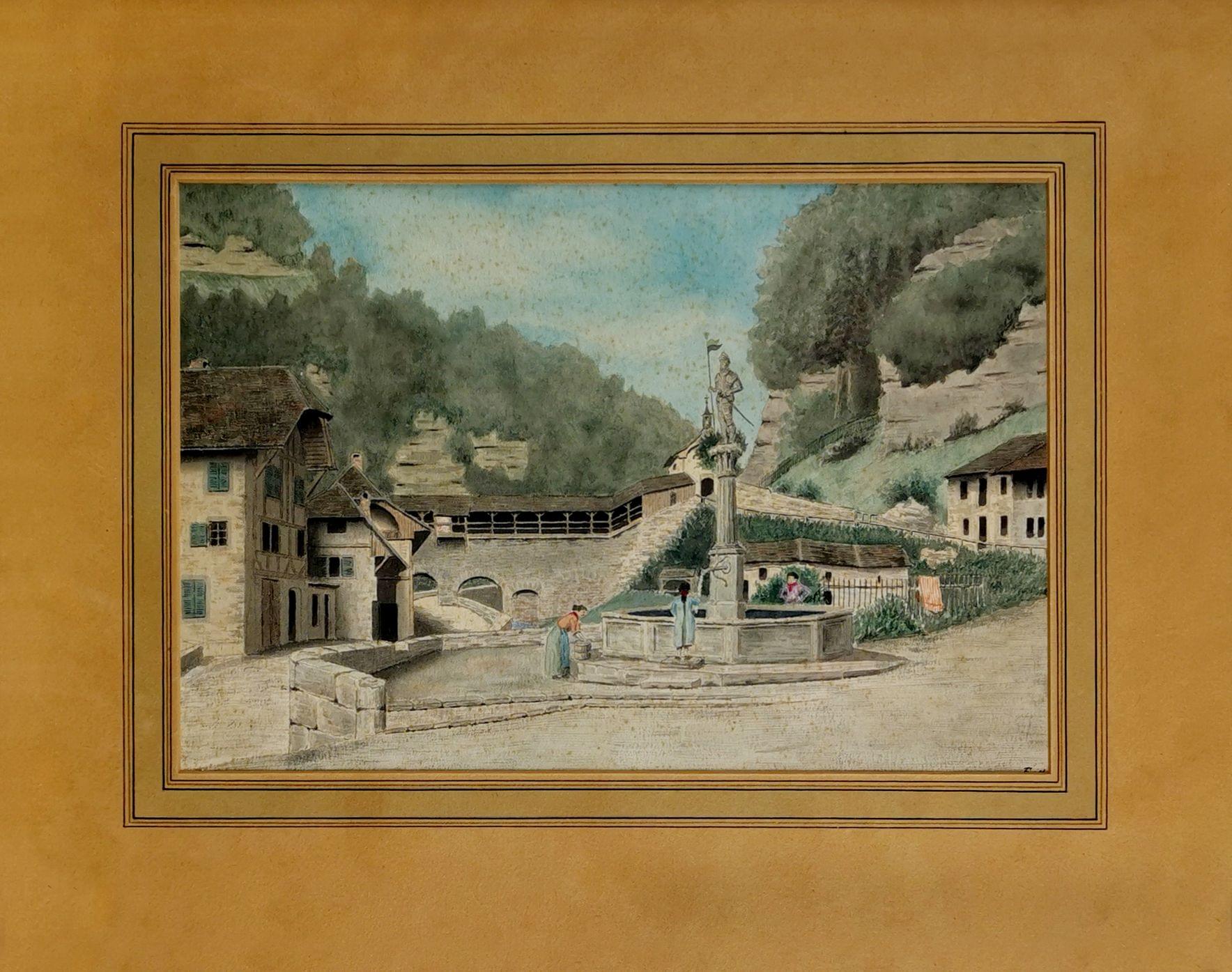 Deux jeunes femmes romaines donnant l'obole à un moine, huile su...
