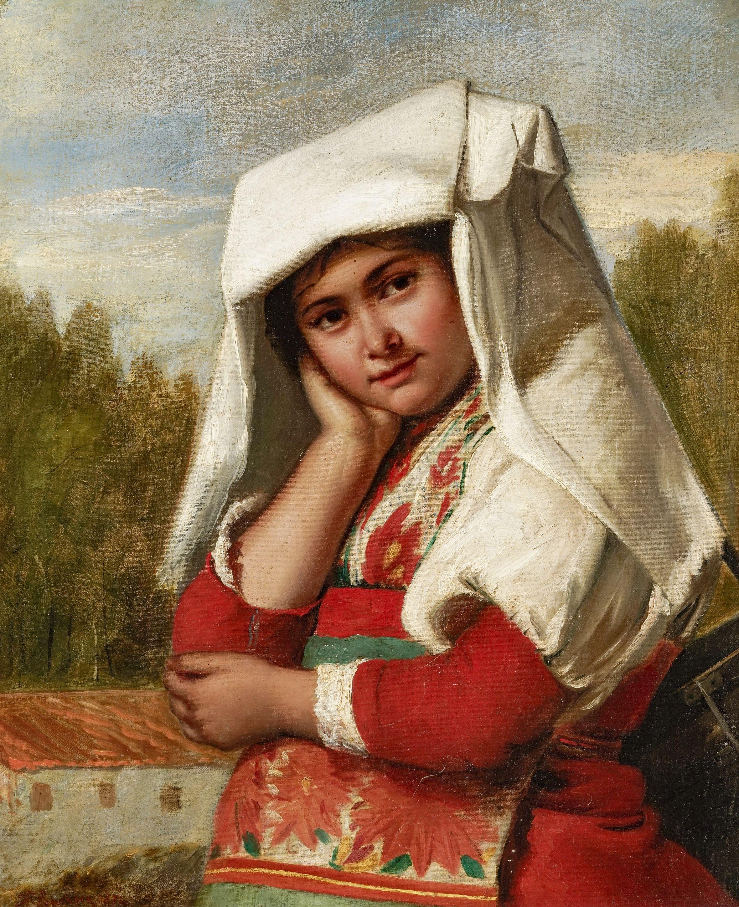 Portrait d'une jeune italienne, huile sur toile, 70x58 cm