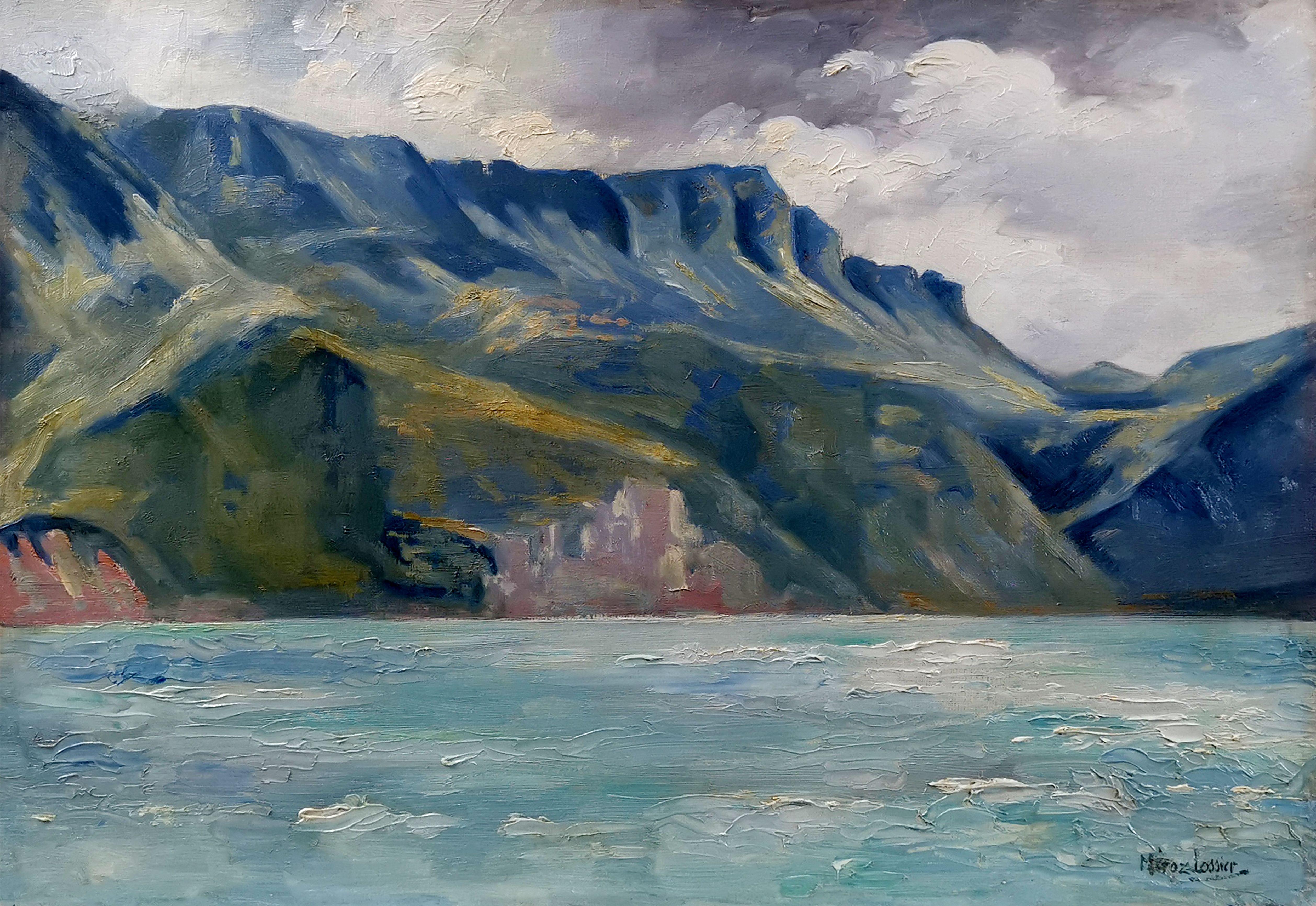 Vue du lac, huile sur toile, signée, 38x55 cm
