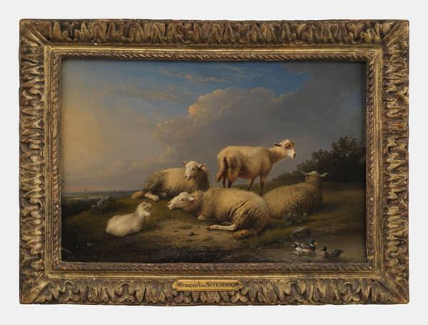 Portrait d'un gentilhomme en berger, huile sur bois, monogrammée...
