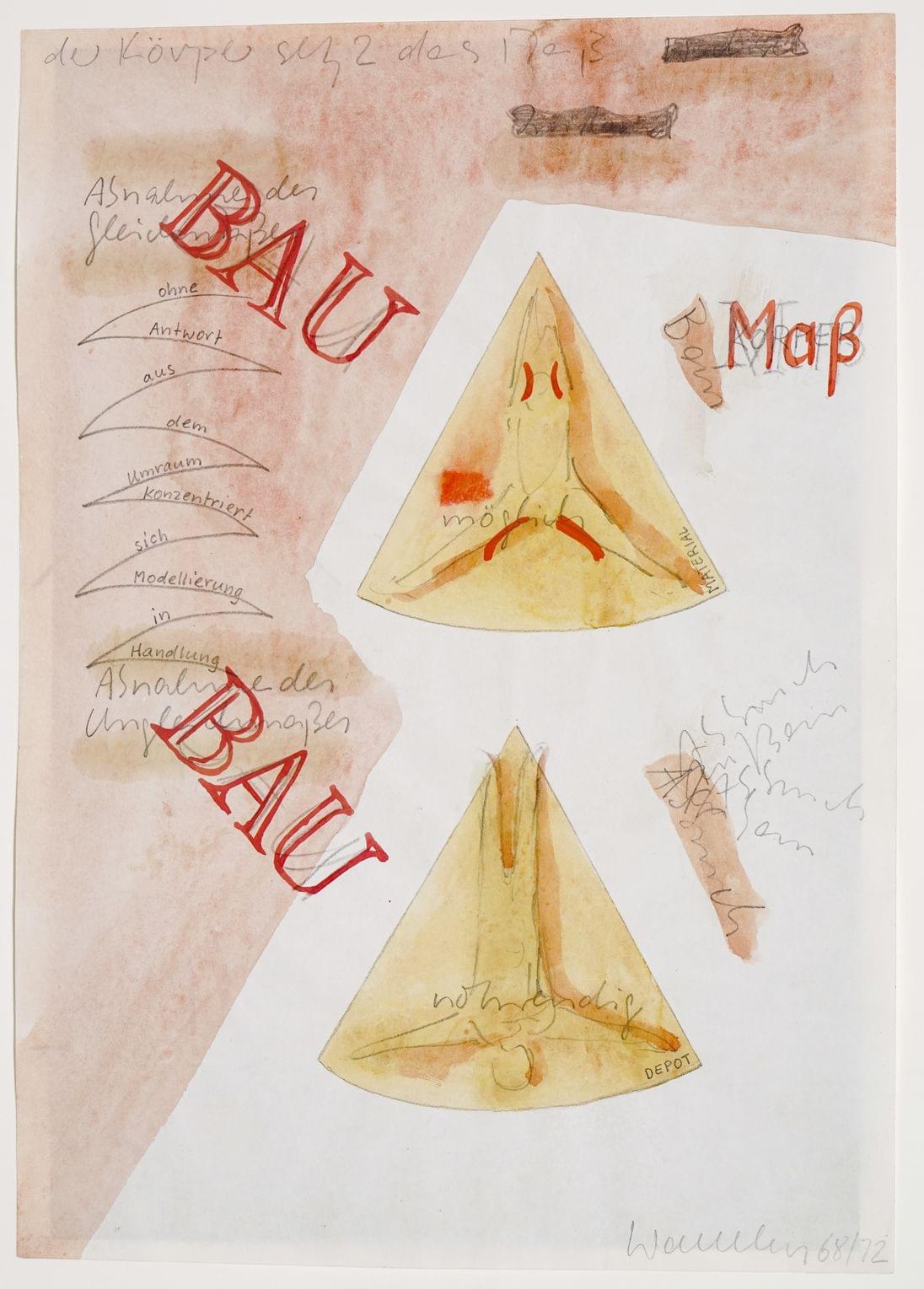 Werkzeichnung, aquarelle et mine de plomb sur les deux faces de...