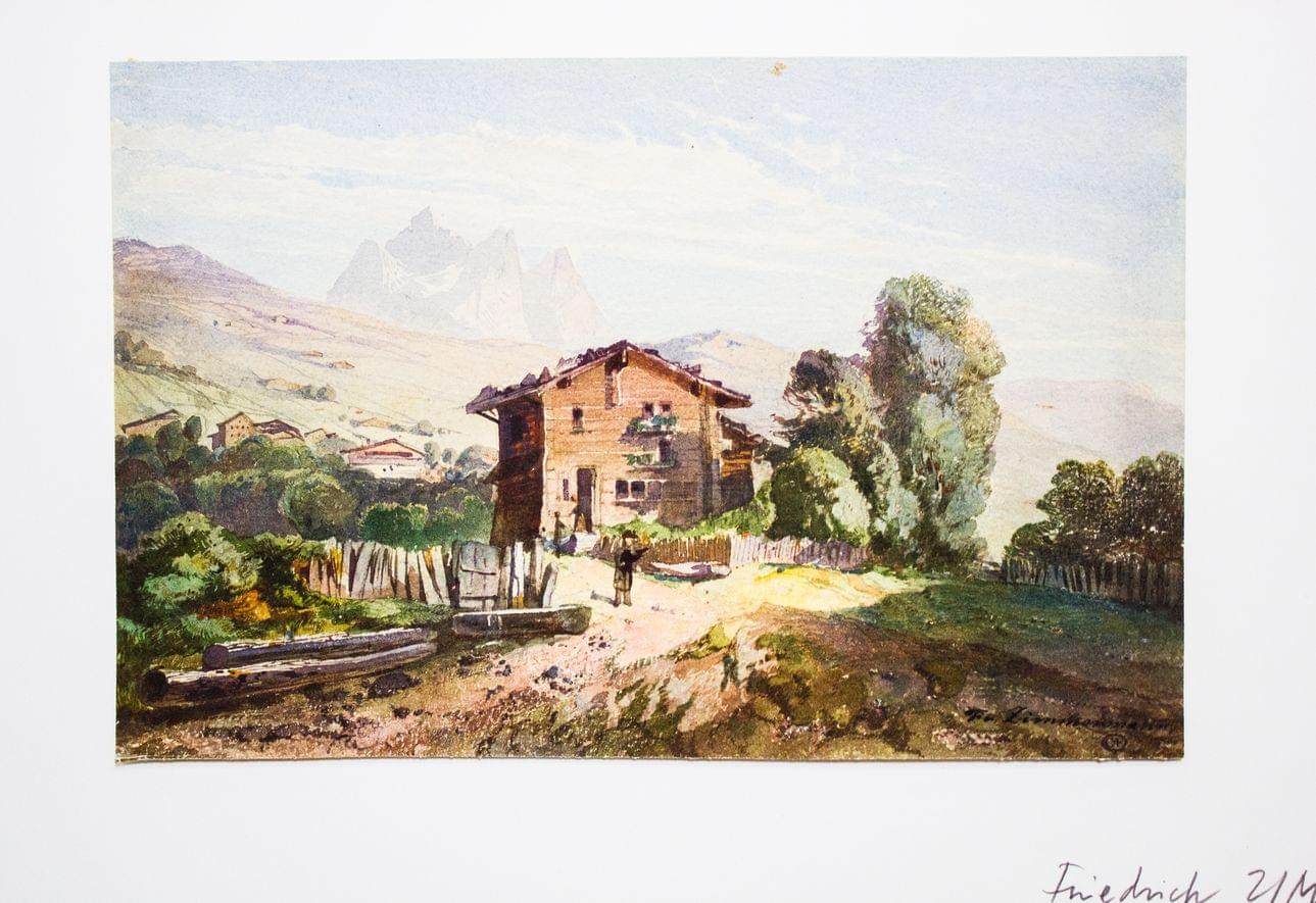 Chemin dans les Alpes fribourgeoises, aquarelle sur papier, signée, 16x24 cm