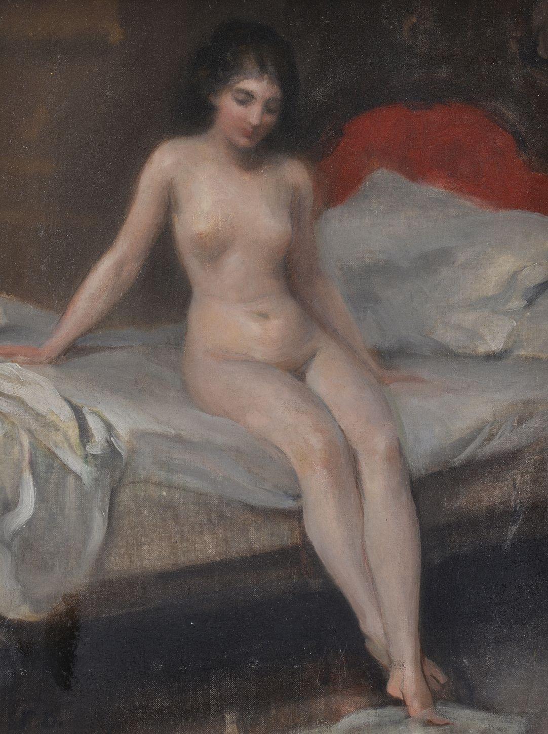 Nu assis, huile sur toile, 35x26 cm. Au dos, étiquette galerie Moos