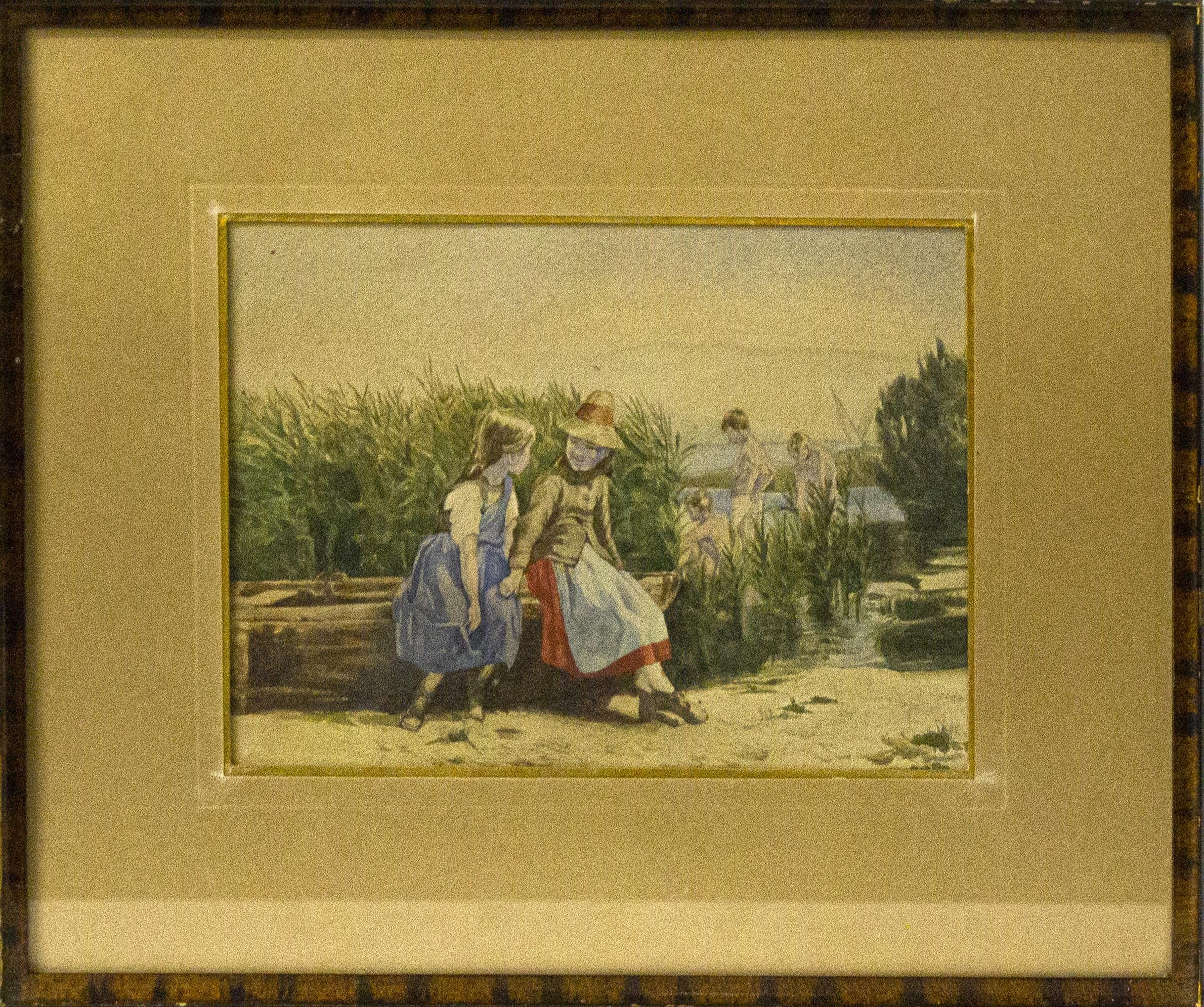 Jeunes filles et garçons au bain, aquarelle sur papier, non signée, 14x20 cm