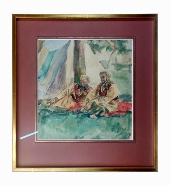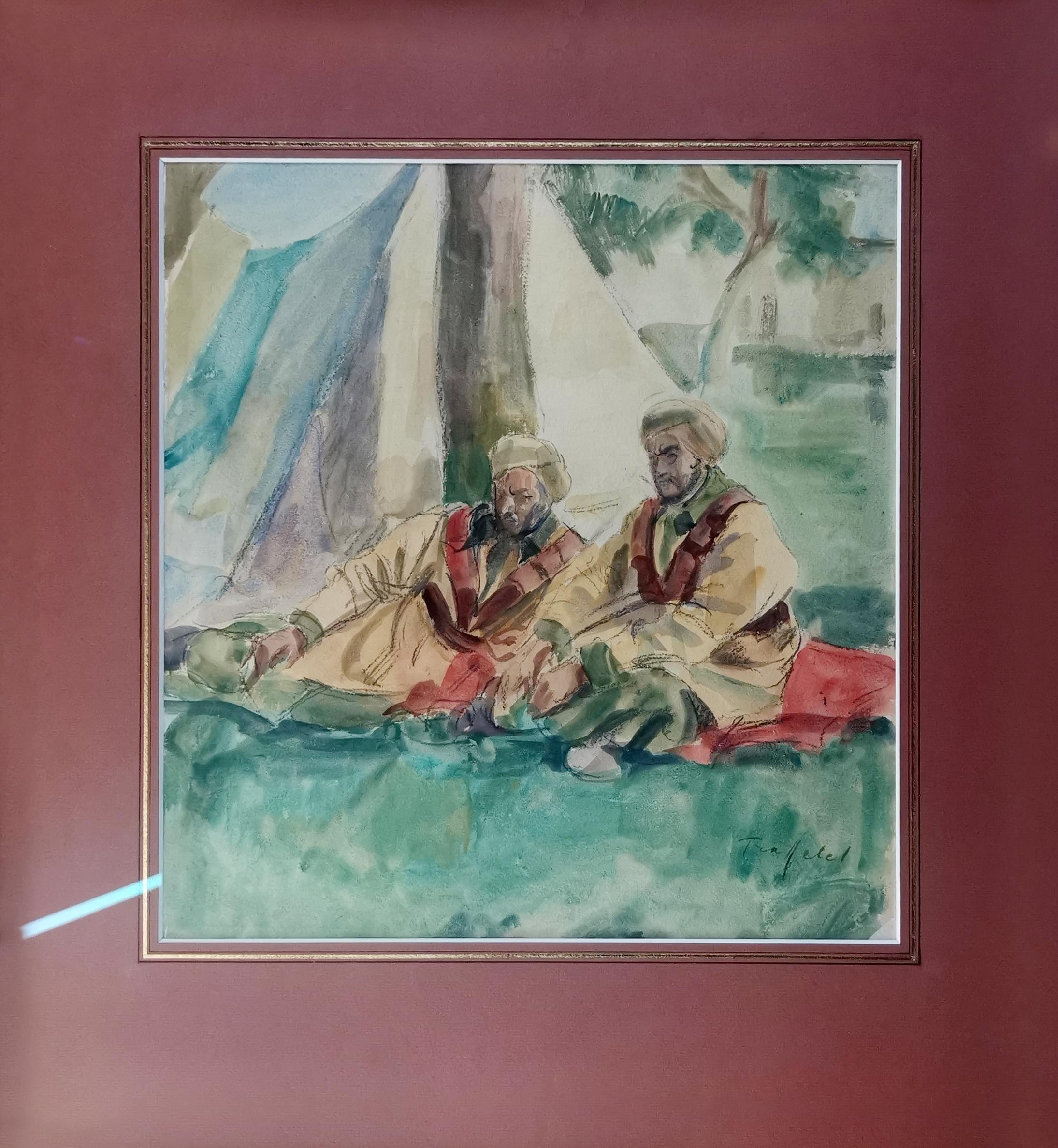 Spahis au repos, aquarelle et gouache sur papier, signée, 40x38 cm