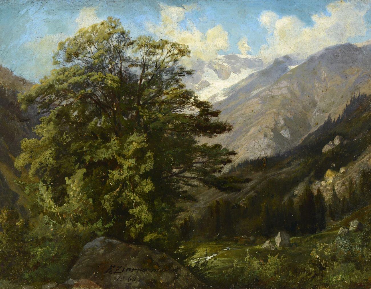 Paysage de montagne, huile sur toile, signée et datée 1860, 25x33cm