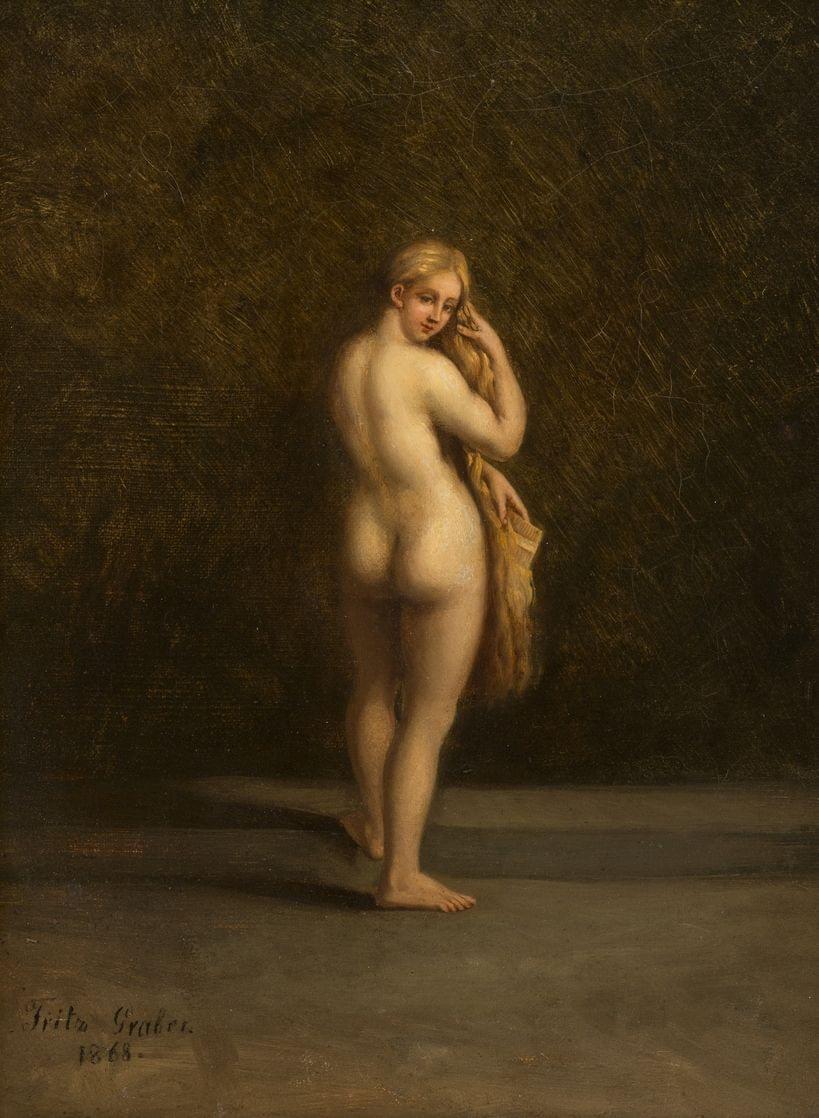 Nu féminin de dos, huile sur toile signée et datée 1868,31x23 cm