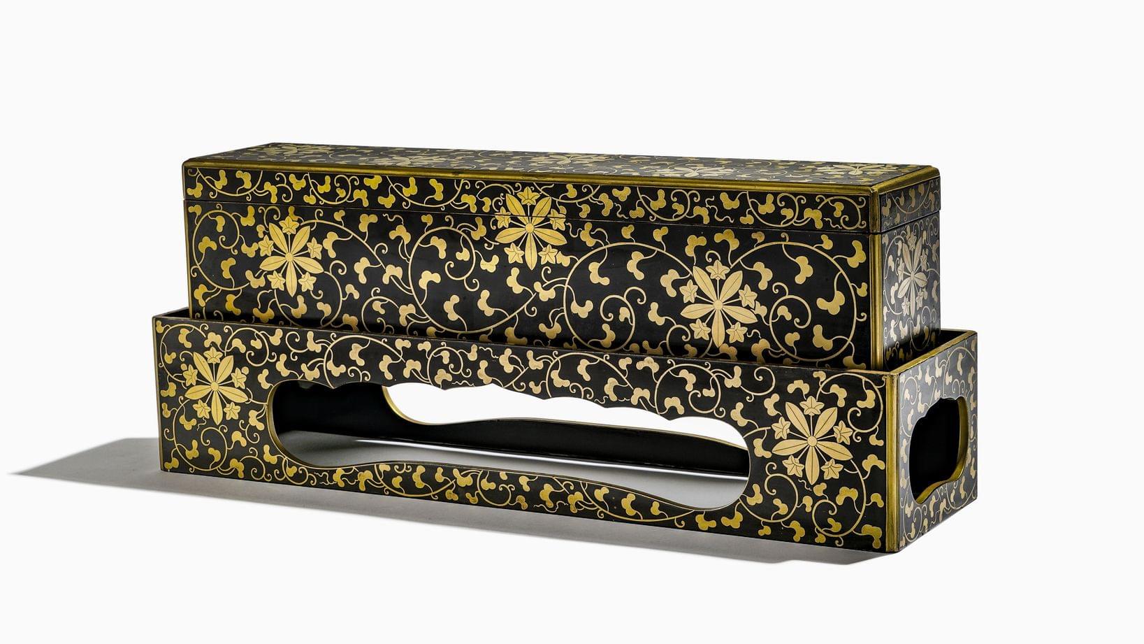Laque noire et or à décor de motifs floraux, 15x54x15 cm