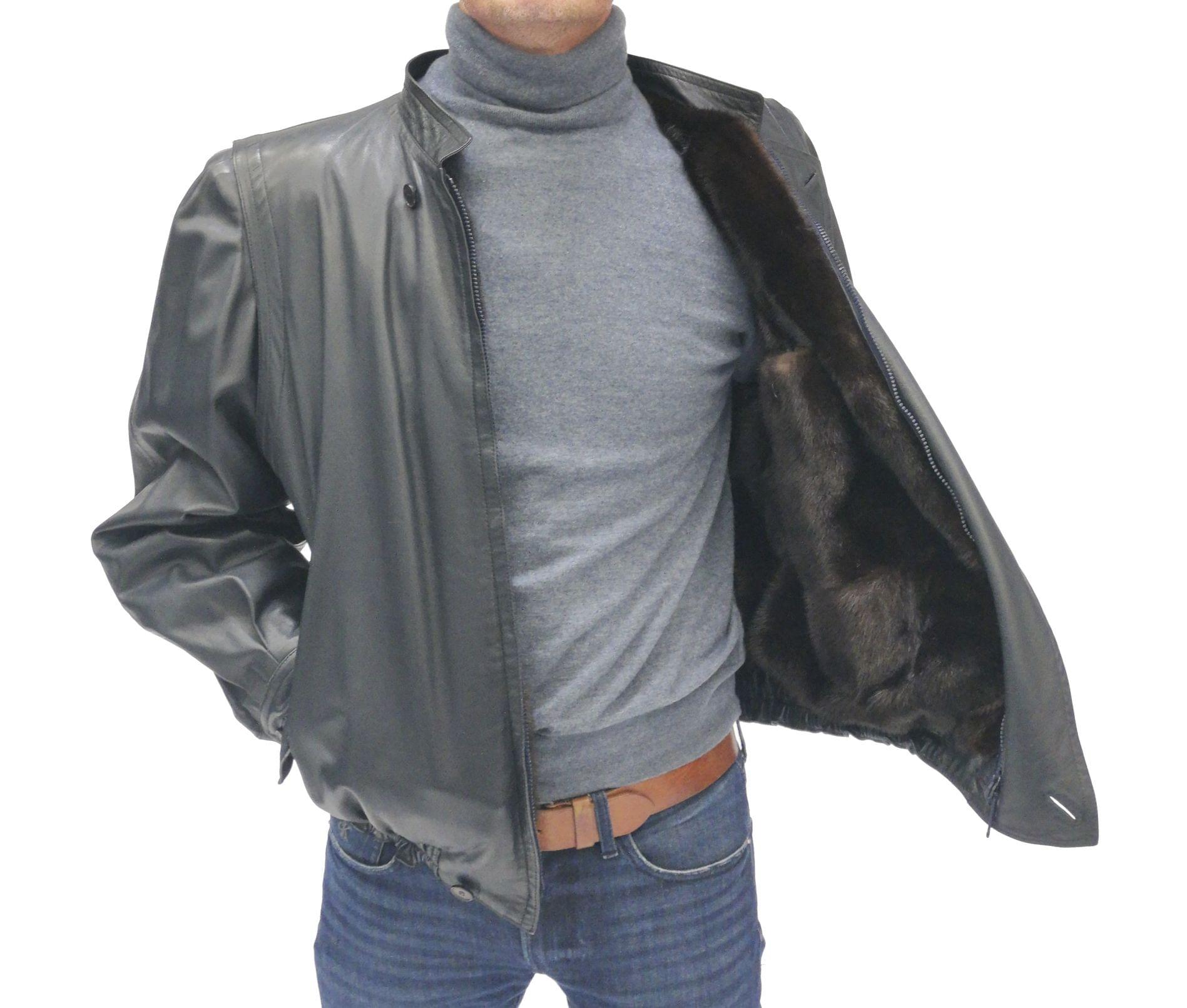 Intérieur doublé de vison marron, poches latérales et fermeture...
