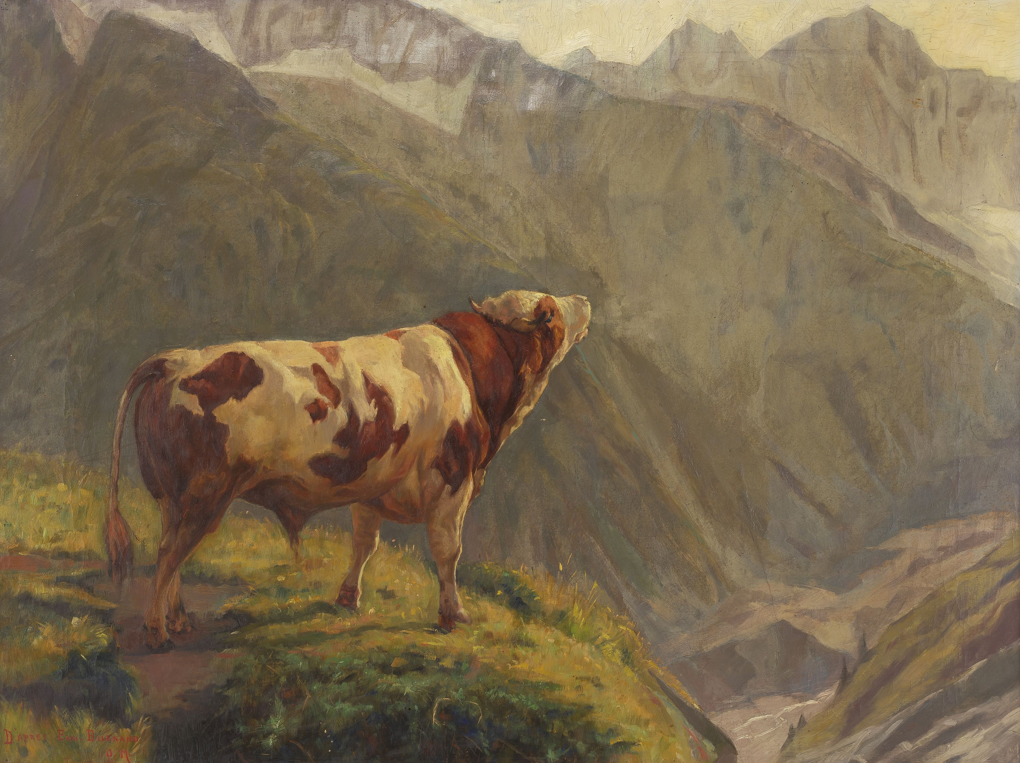 Taureau dans les Alpes, huile sur toile, 70x92 cm. L'original ex...