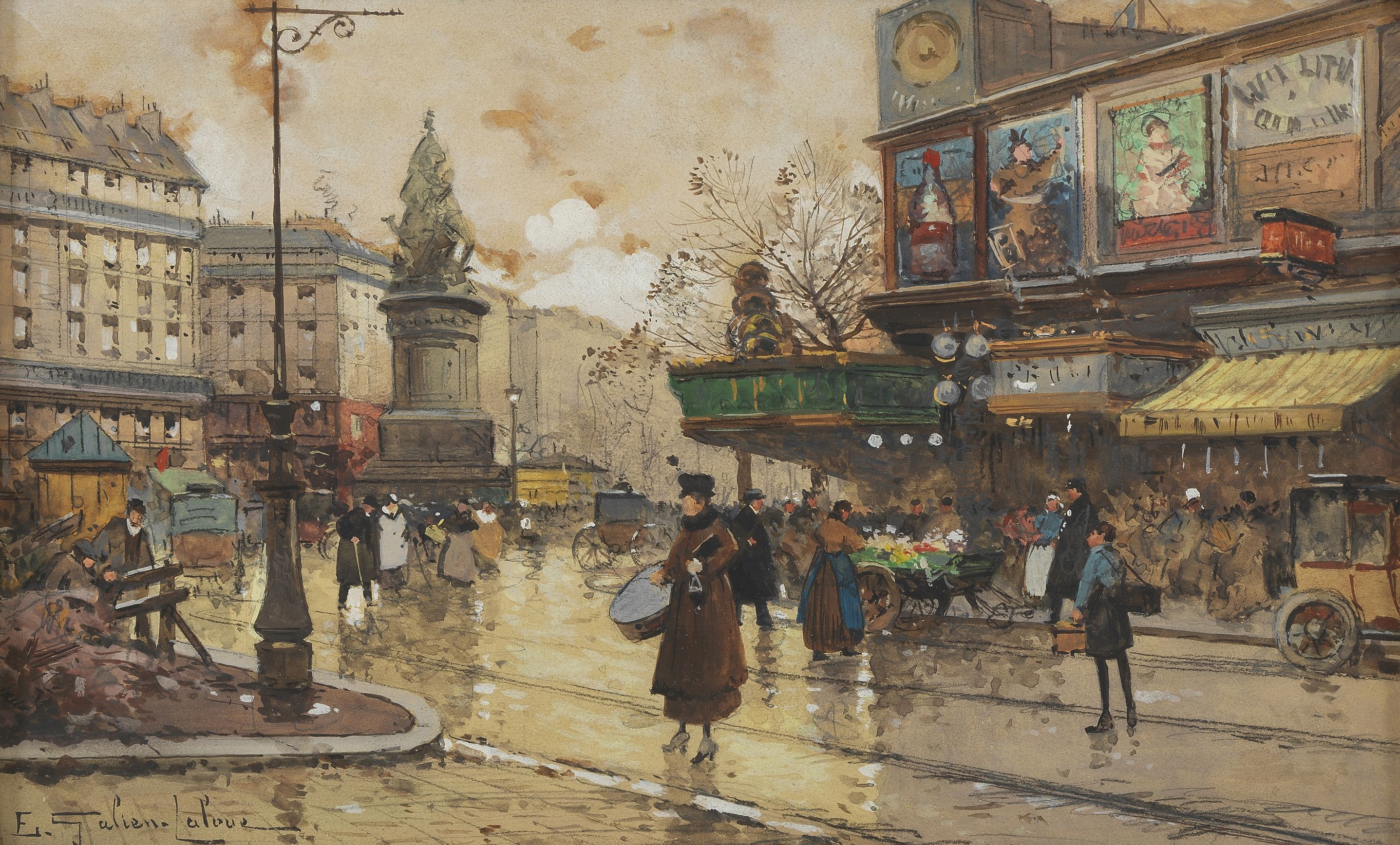 Place de la République, gouache sur papier, 32x21 cm