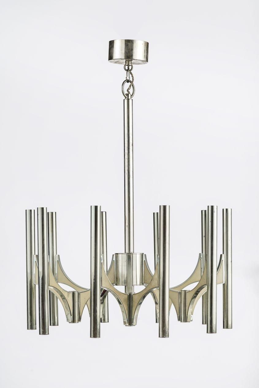 Lustre à dix lumières, métal chromé, H 87 cm