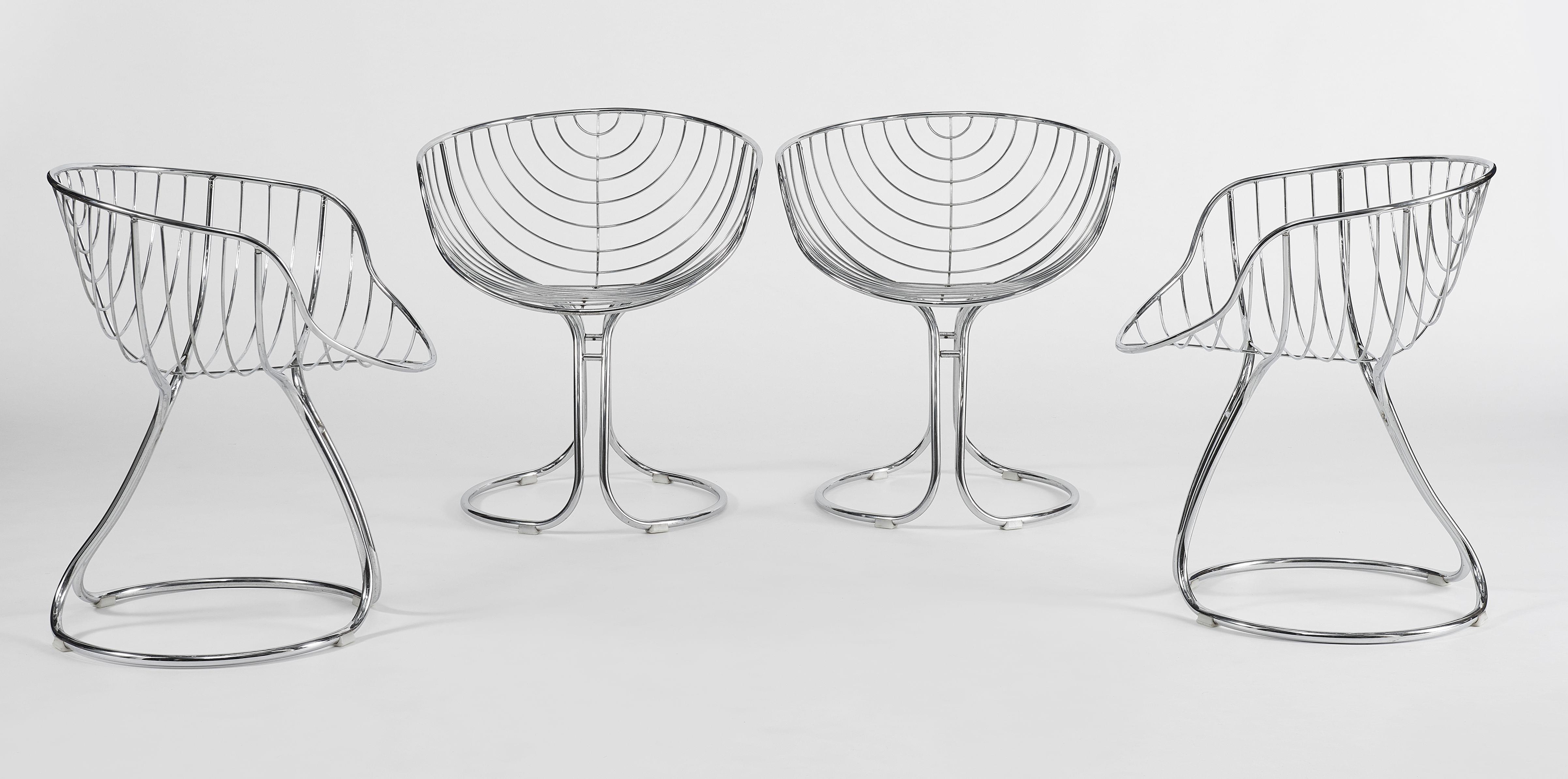 Suite de quatre chaises modèle « Sabrina », métal chromé