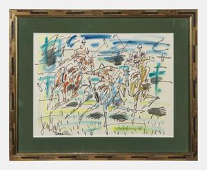 Joueurs de polo, pastel gras sur papier, signé et situé , 47x62 cm