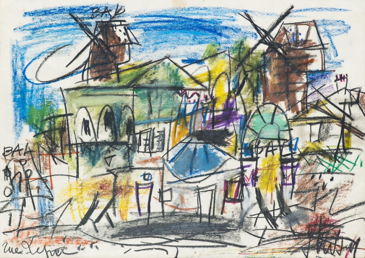 Rue Lepic, fusain et pastel sur papier, signé et situé, 27x38 cm