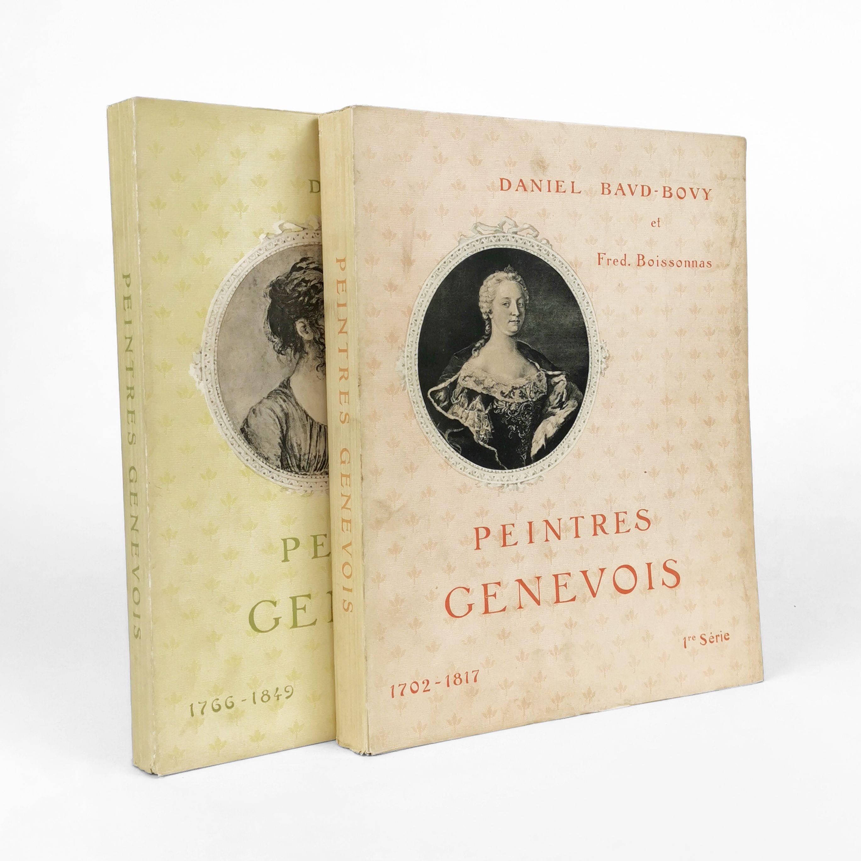 Deuxième série, Genève, 1904, deux volumes in 4° brochés, couvertures illustrées. Ouvrage capital sur les artistes genevois entre 1702 et 1849, dont, bien sûr, Liotard ou Töpffer Chaque exemplaire est enrichi d’un bel envoi de Boissonnas à son fils Edmond, daté.