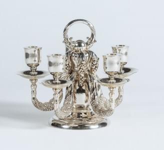 Bois noirci, laiton et marbre blanc, 94x141x68 cm