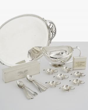 Noyer et métal cuivré, signée, 71x66x88 cm