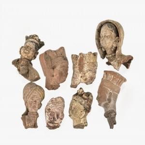 349. Suite de huit têtes coiffées, Inde, empire Gupta, V-VIe s et pos...