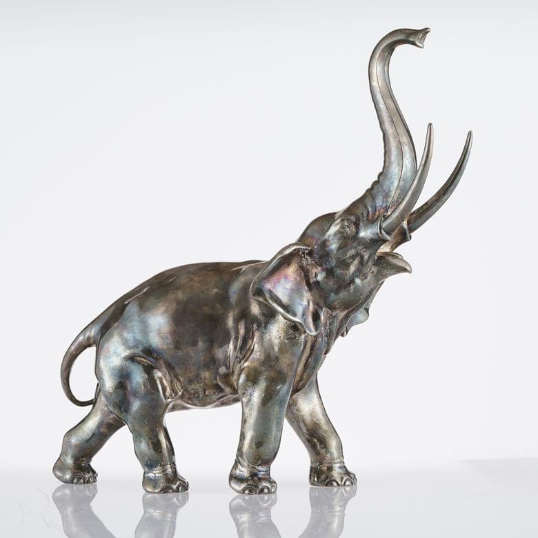 Eléphant barissant, bronze signé, H 38 cm