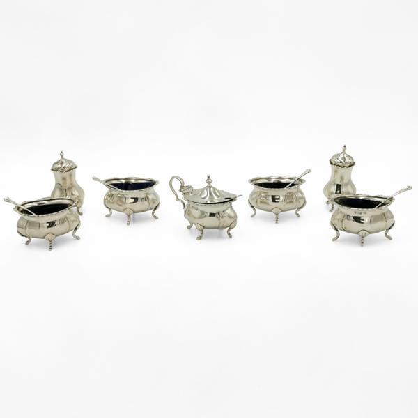 Sheffield, argent et verre bleu cobalt, comprenant: 4 salerons,...