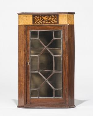Acajou, vantail vitré à compartiments, frise marquetée d'un oise...