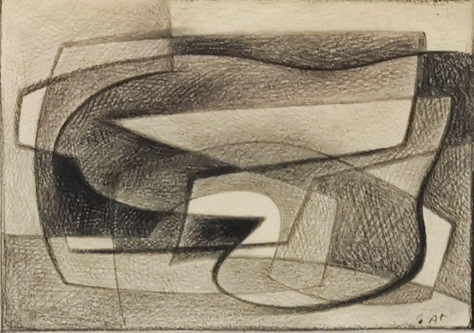 Composition abstraite, mine de plomb sur papier, monogrammée, 15x20 cm