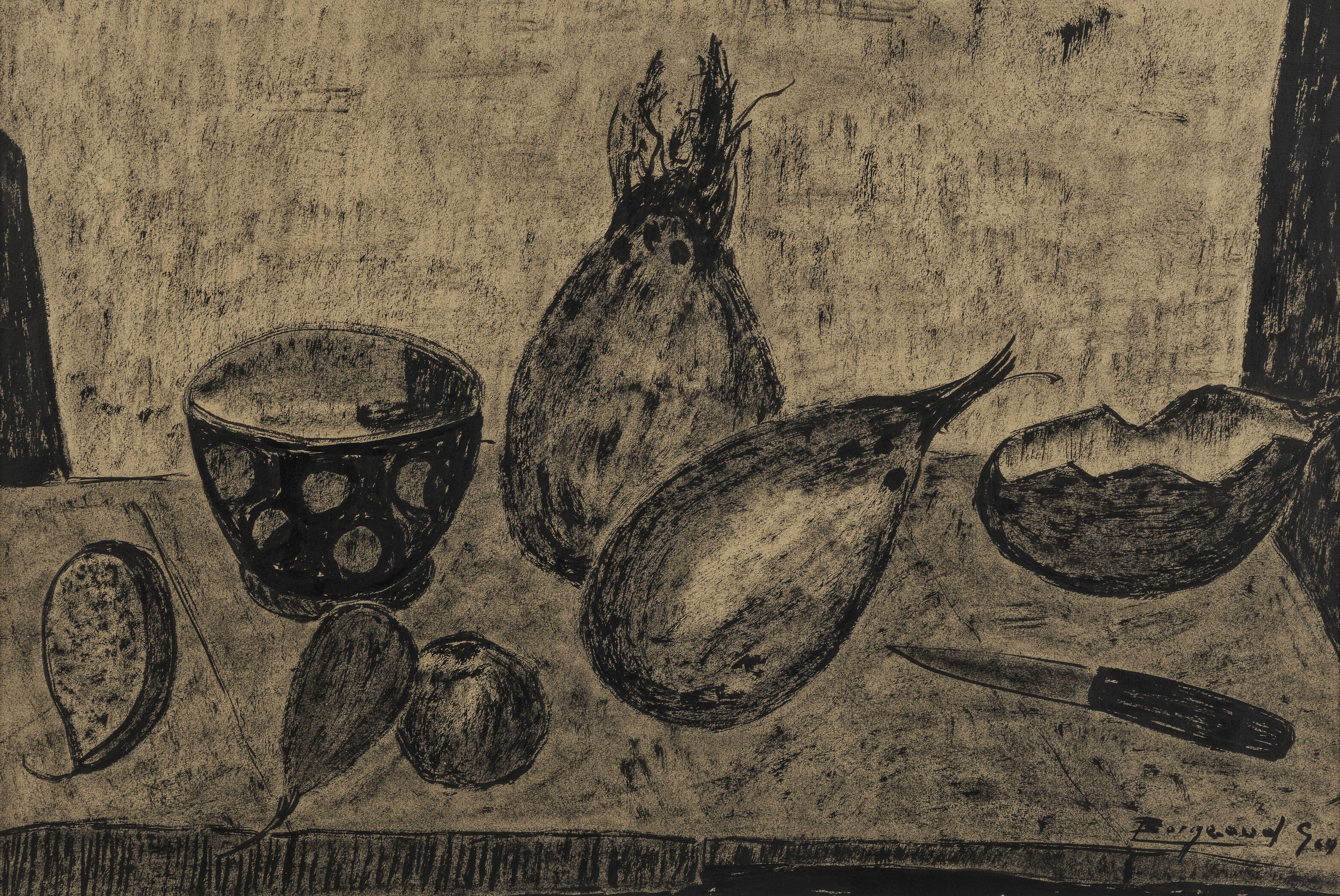 Nature morte aux fruits, encre sur papier, 44x65 cm