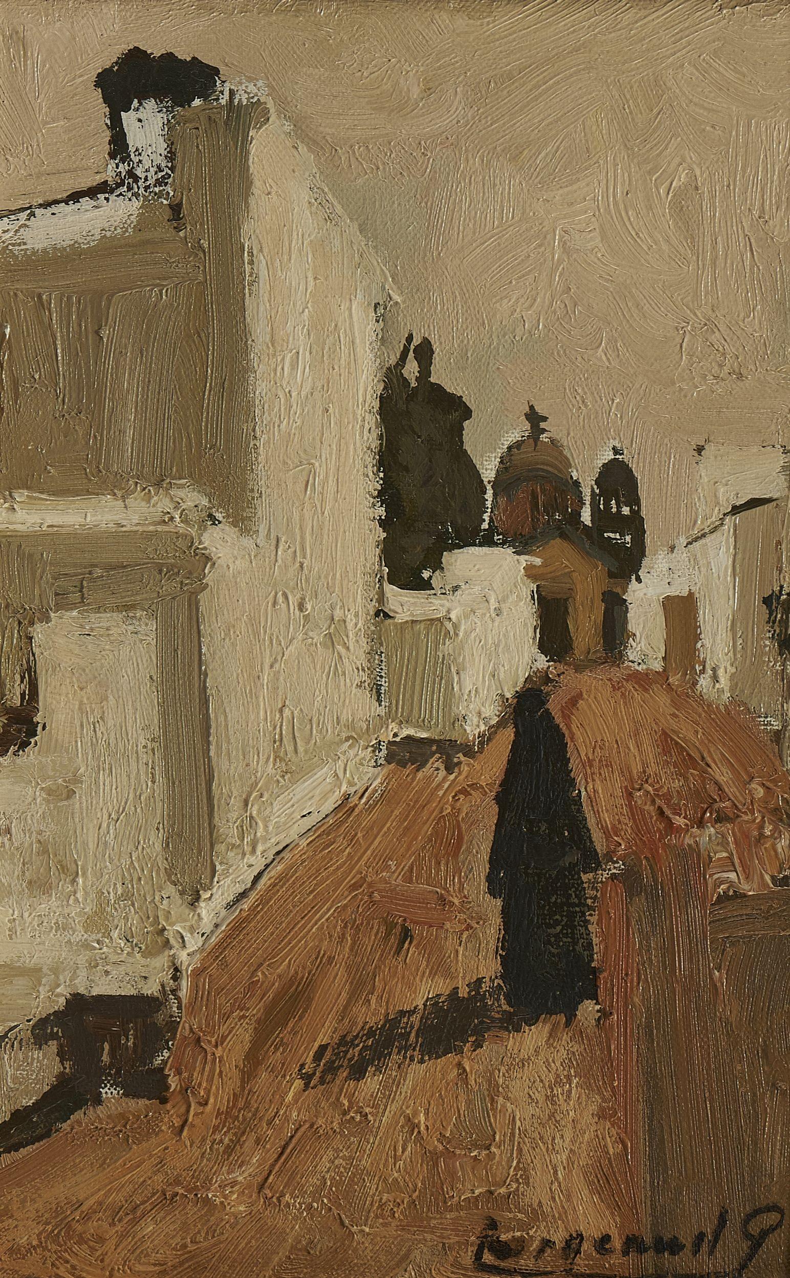 Paysage, huile sur carton, signée au dos, 35,5x45 cm