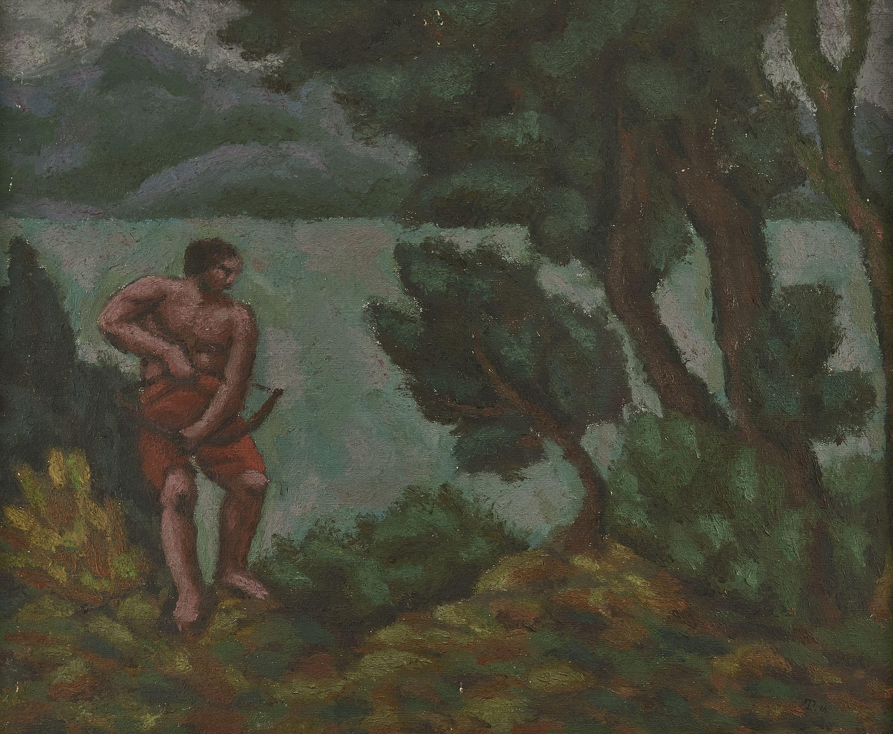 Forêt, huile sur carton, signée et datée 23 au dos, 25x34,5 cm
