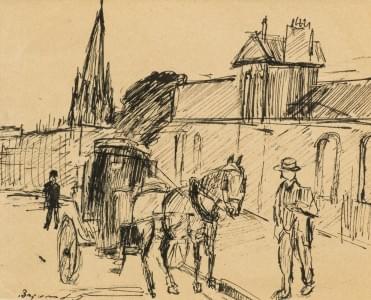 Scène à Certoux, encre sur papier, signée, 10,5x13 cm