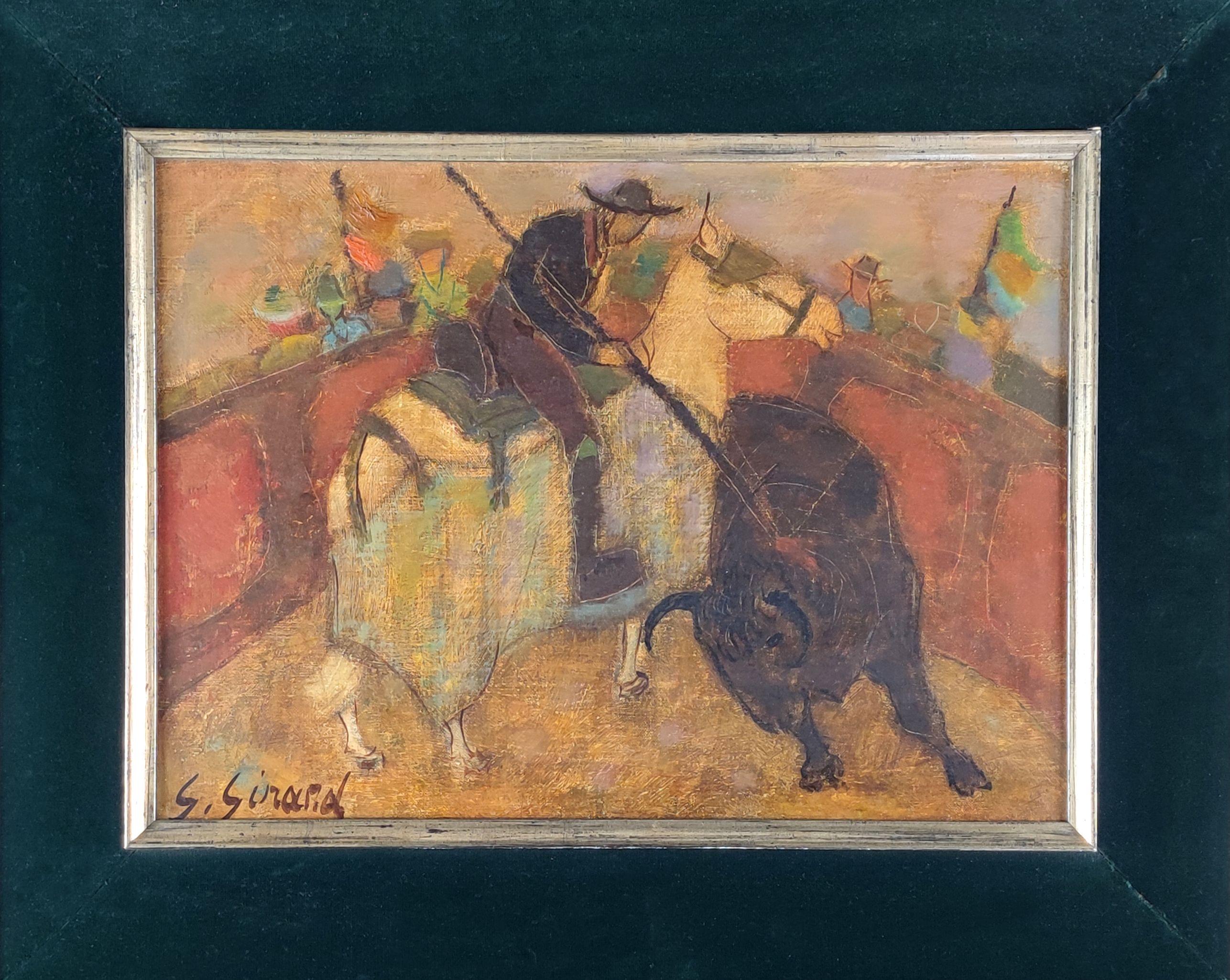 Nature morte au cheval de bois, huile sur toile, signée et datée...