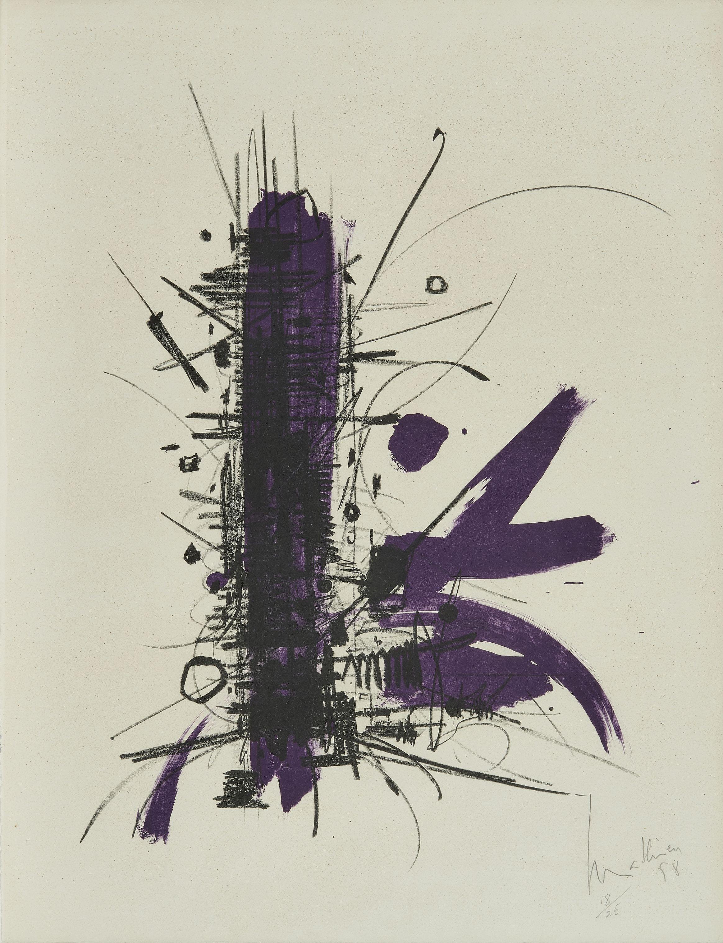 Pommes sur fond noir, lithographie originale en noir, 1954, sign...