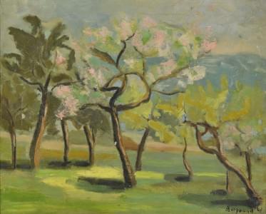 Le verger, huile sur toile signée et datée 47, 33x41 cm