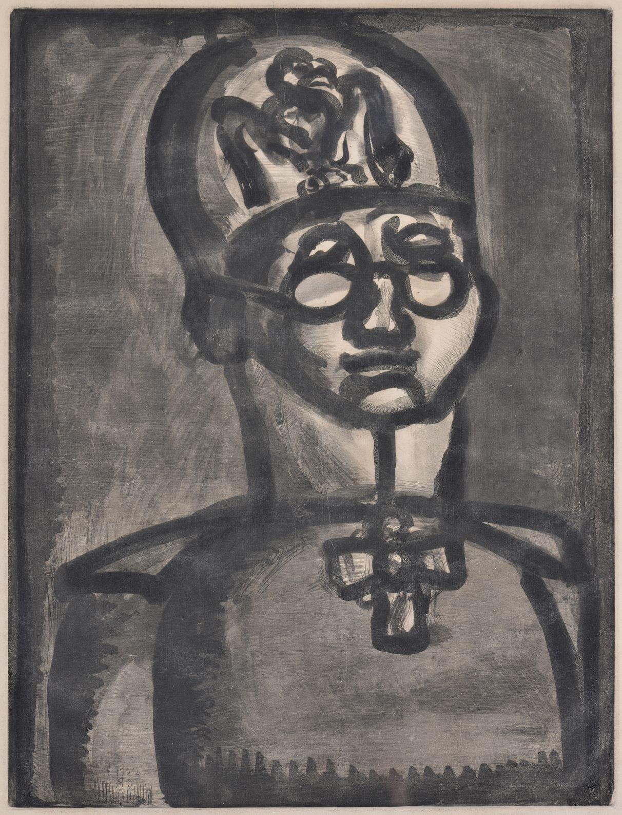 Rue de village, lavis et encre de Chine sur papier, signé, 48x64...