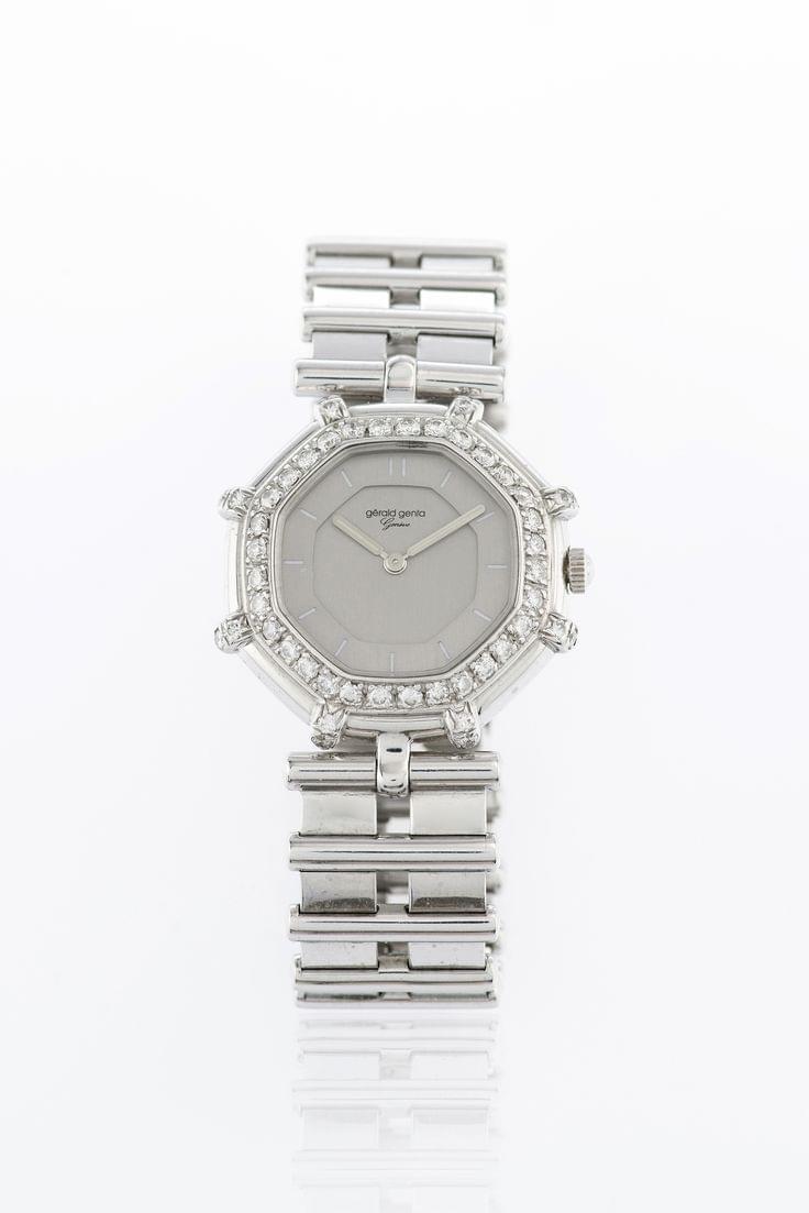 Cadran et index bâton argent, or gris 750, D 14 mm, poids brut 2...
