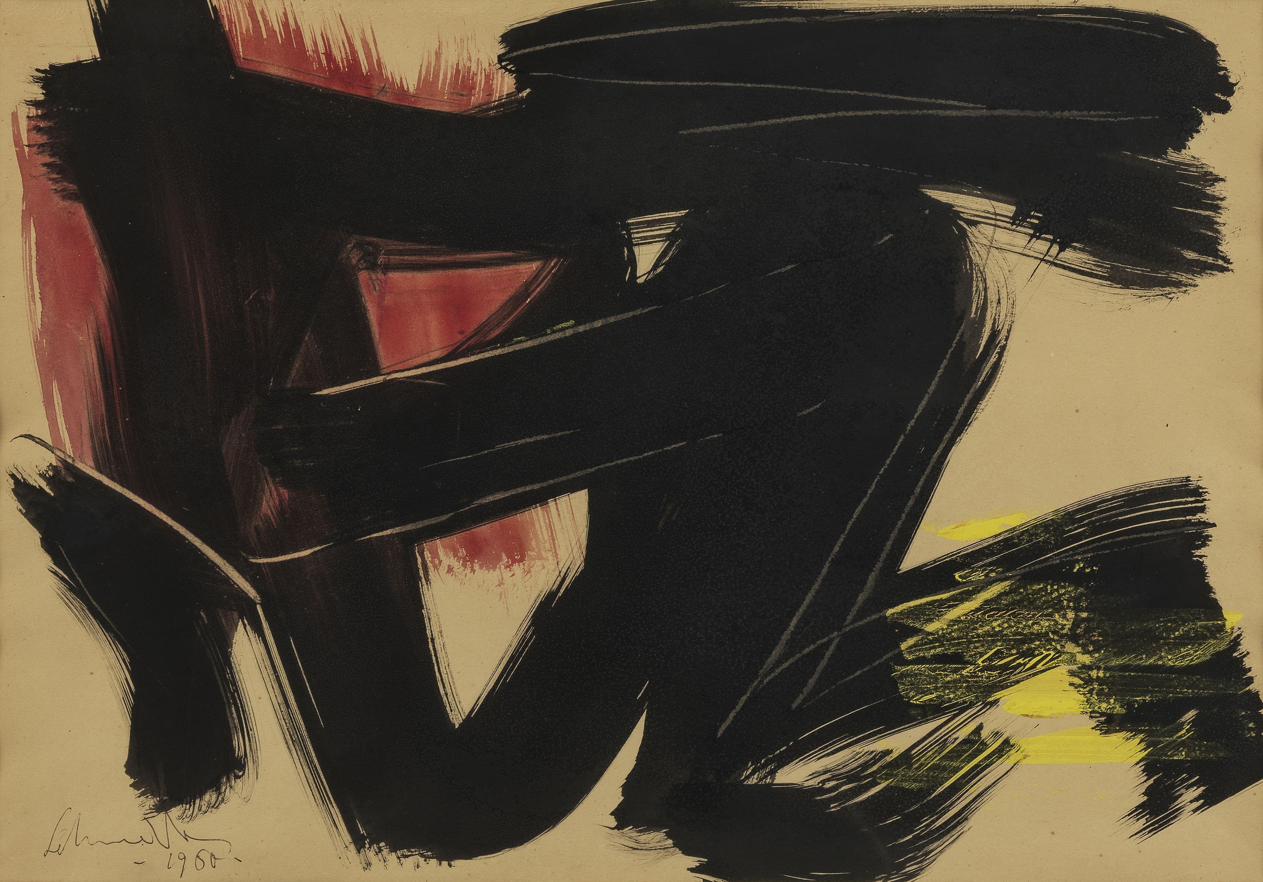 Abstraction, encre et gouache sur papier, signée et datée 1960, 36x52 cm