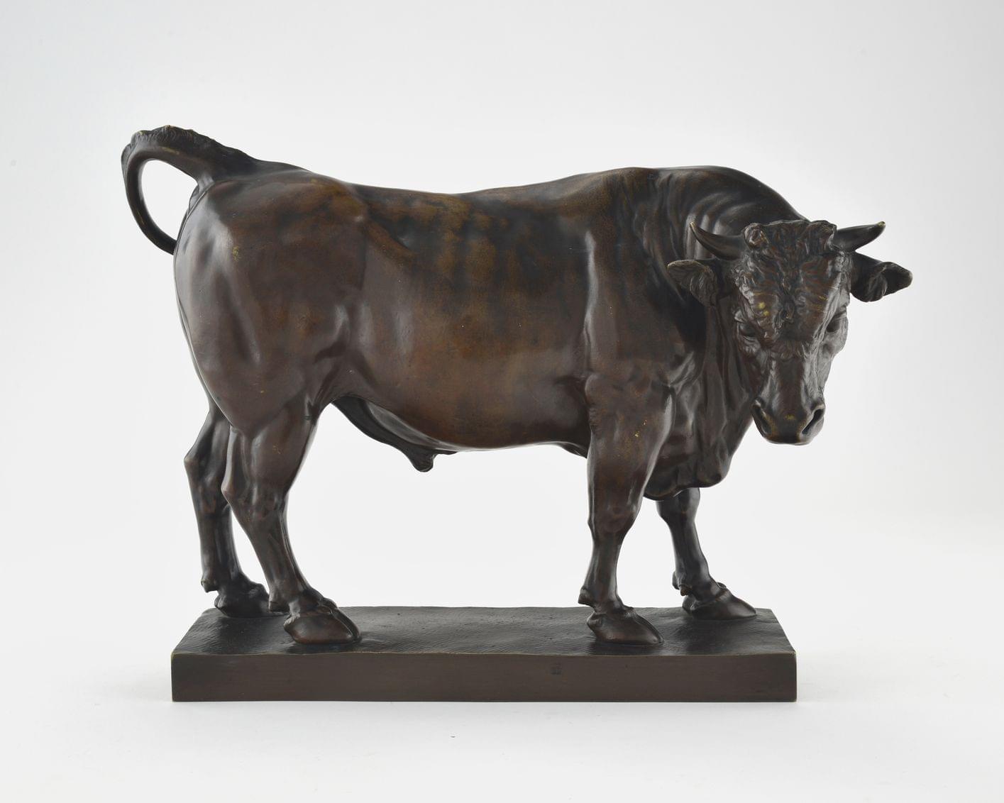 Le taureau, bronze à patine brune, signé, 32x46x12 cm