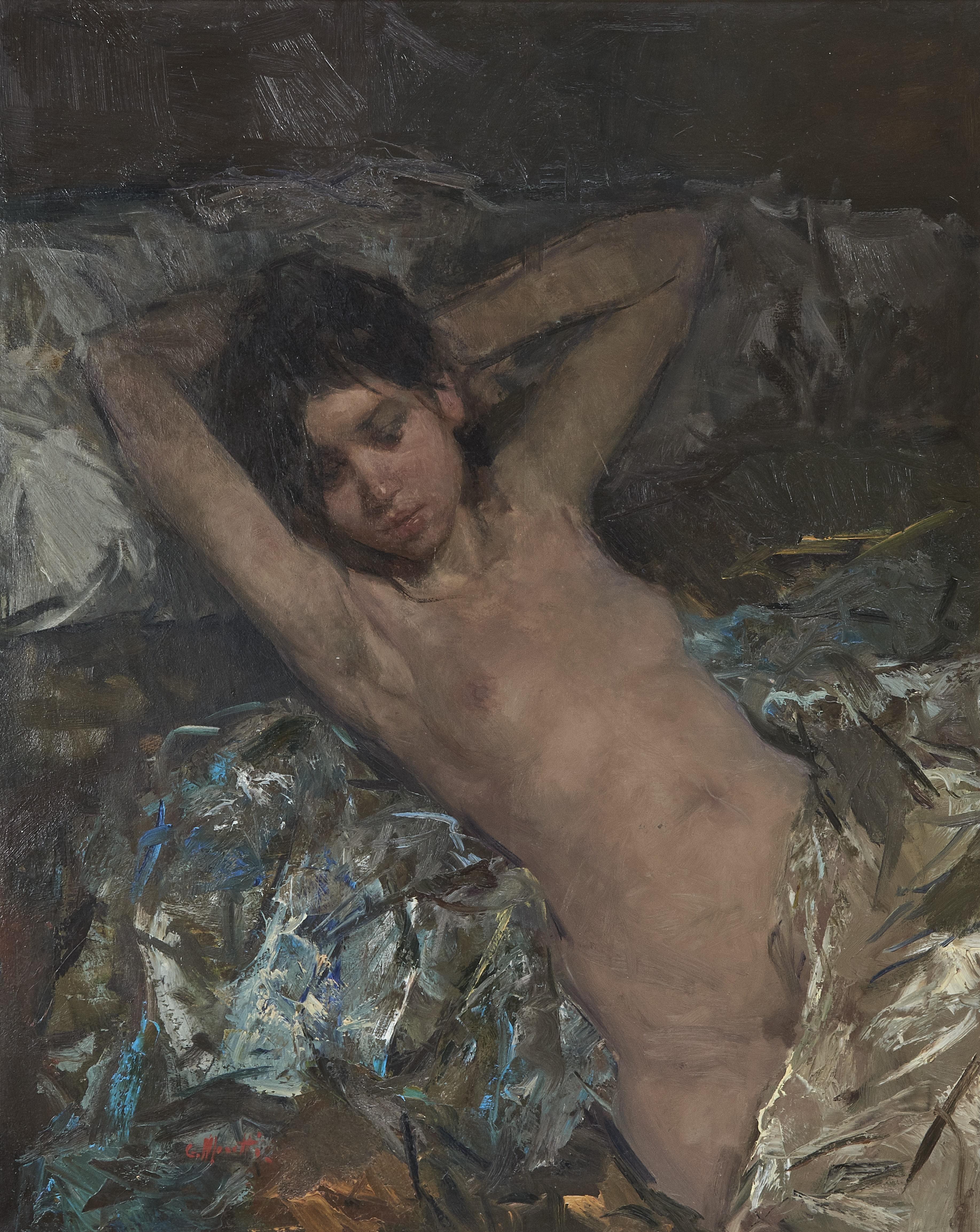 Nu féminin dans un fauteuil, huile sur toile, signée et datée 19...
