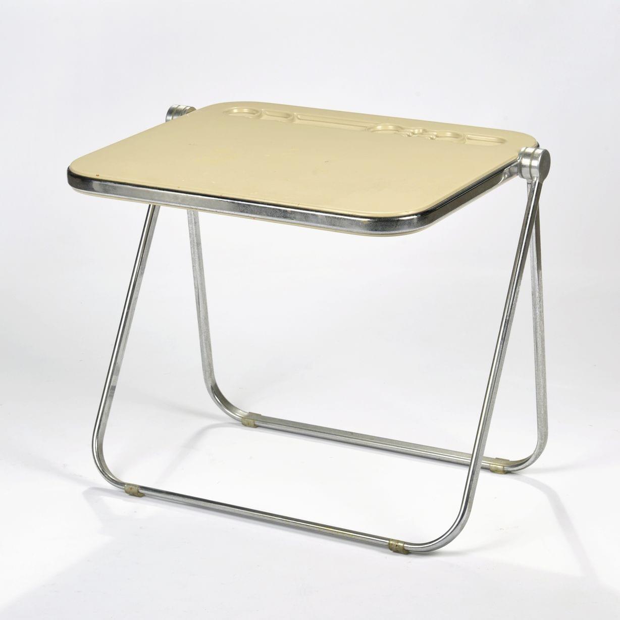 Bureau pliable Platone, ABS thermoformé teinté gris, acier chromé, ed. Castelli, 78x83x65 cm