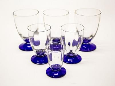 8 verres à vin blanc et 8 verres à liqueur facettés sur pied ble...